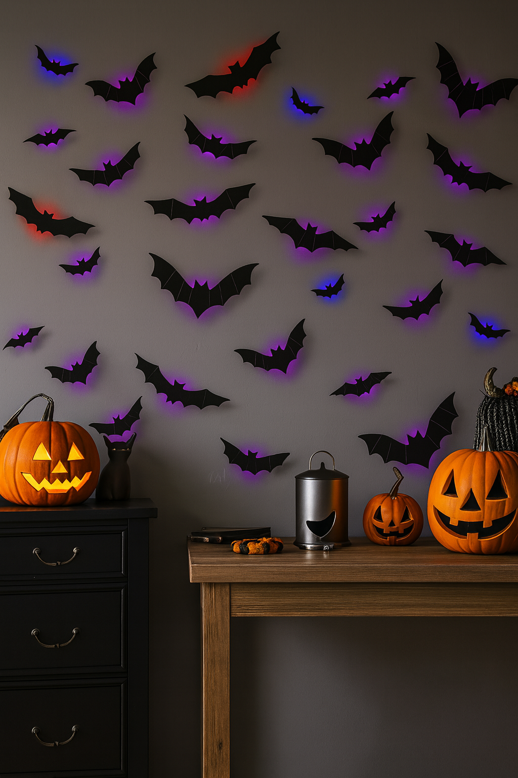 🔸 Realistyczny wygląd – nietoperze w różnych rozmiarach imitują prawdziwe, latające stworzenia
