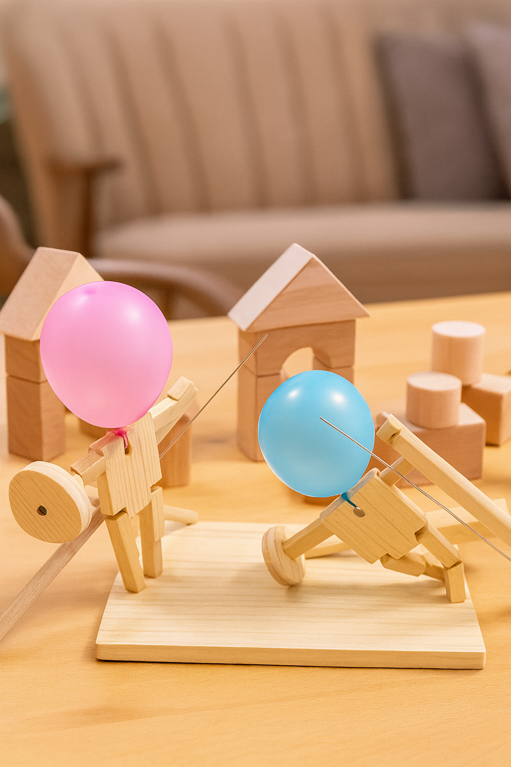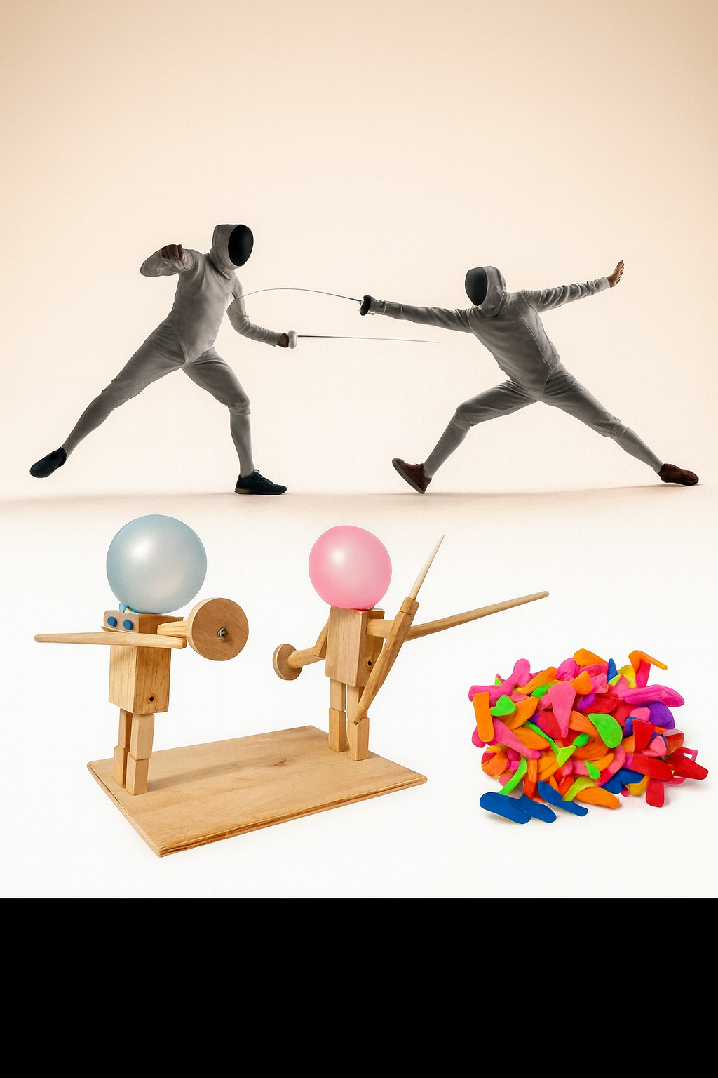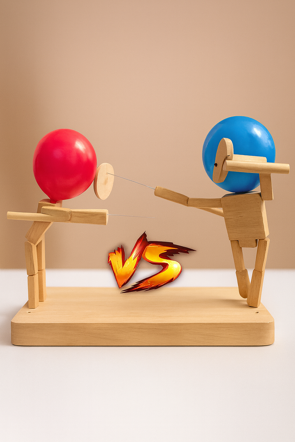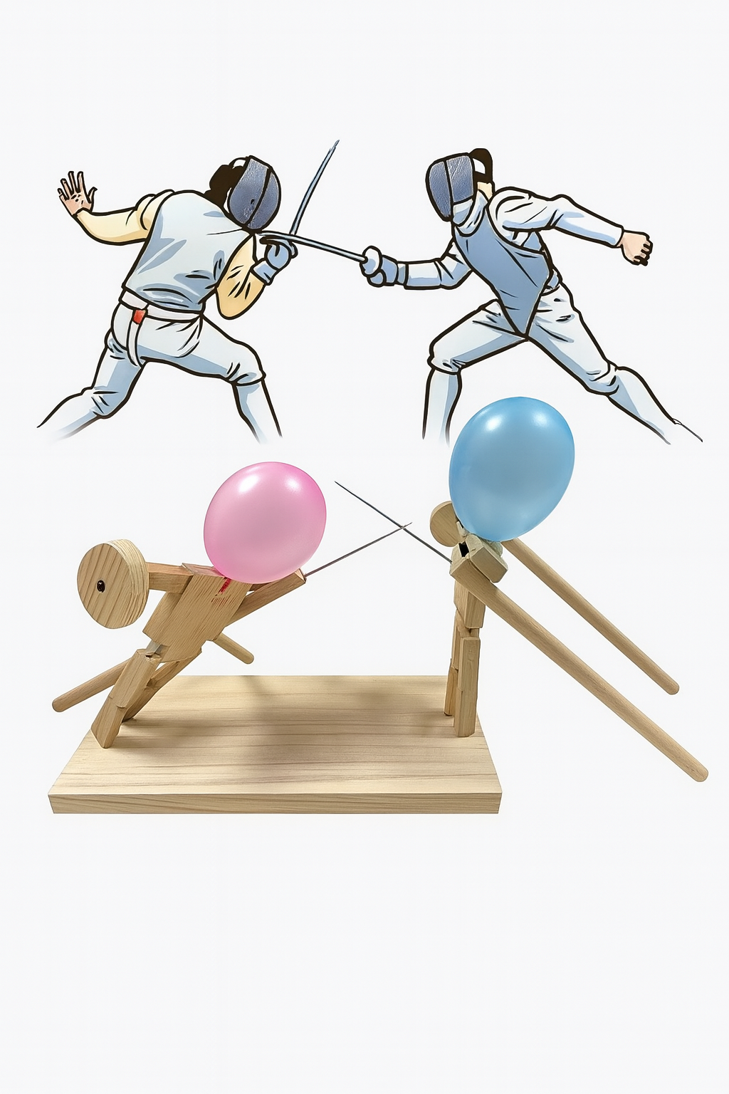 Czas na prawdziwy pojedynek! Dzięki tej wyjątkowej grze zręcznościowej dzieci (i dorośli!) mogą wcielić się w wojowników, których celem jest przebić balon przeciwnika zanim samemu straci się swój. Naturalne drewno, kolorowe balony i proste mechanizmy sprawiają, że zabawa jest ekscytująca, bezpieczna i pełna śmiechu.